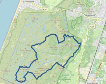 De wandeling gaat dwars door de Amsterdamse Waterleidingenduinen. De naam van het gebied zegt het al, hier wordt water gewonnen voor Amsterdam. Nu denk je vast, oh dit zal er wel saai uitzien, geen dieren te zien en er zullen wel pijpen of grote gemalen zijn. Dit is dus niet zo. Het gebied is zeer uitgestrekt en heeft wisseling in natuur. Naast de veranderingen in de natuur valt er meer te zien, zo zijn er een oranjekom, vinkenbaan, oude akkers, museumbunker en hertensafari met “wilde” herten. Hierdoor zijn er veel verschillende wandelingen mogelijk, van kort tot lange wandelingen en voor ouders met kinderen of voor oudere.